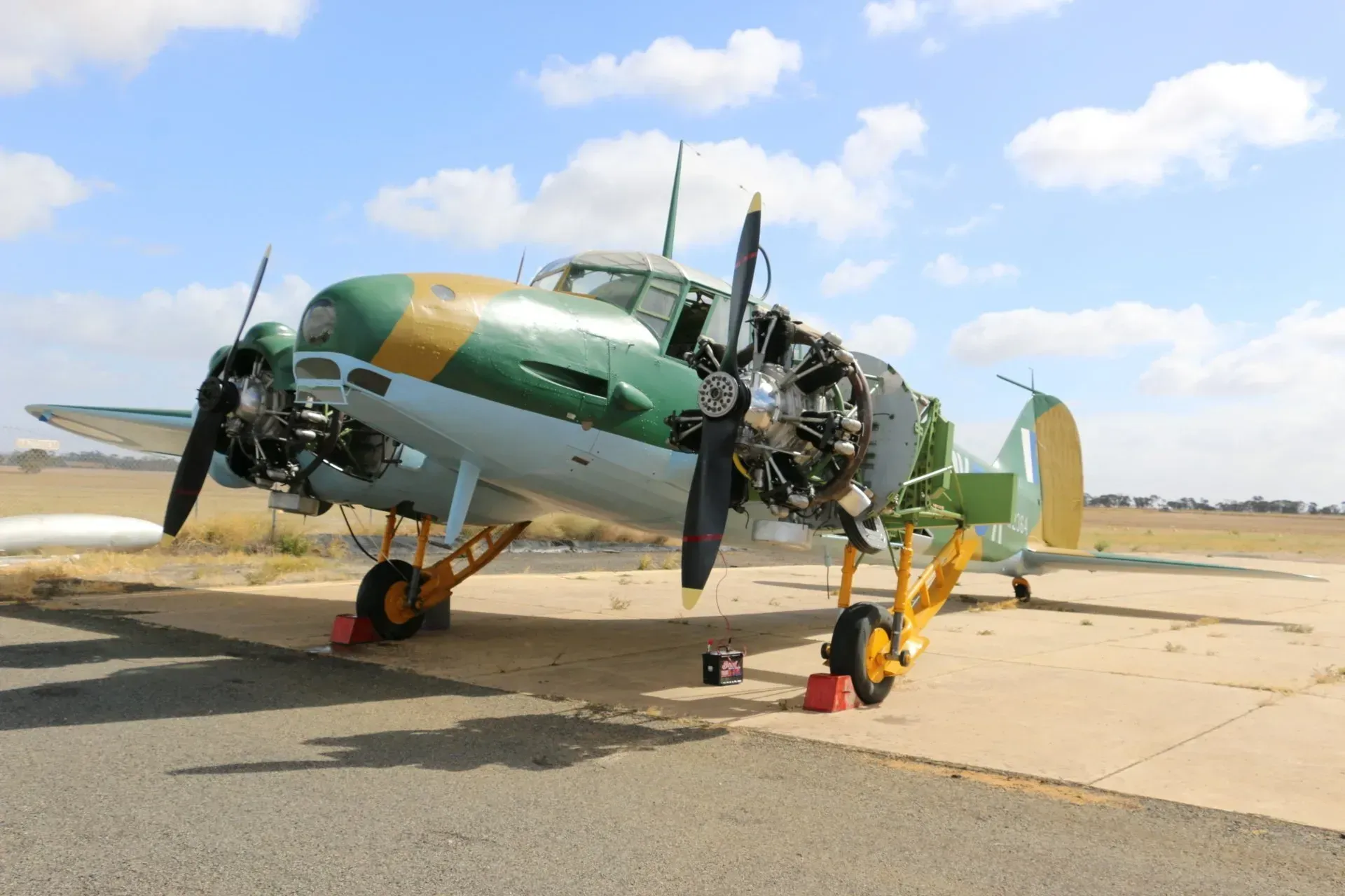 After a practice run on Friday, and last-minute adjustments to the engines, all eyes were on the Avro Anson plane at midday on Saturday. It wouldn’t pass an airworthy test with only one wing, but the plane still looked majestic standing on the tarmac. Brian Creek climbed into the cockpit to work the controls. The propellers were pulled over, and the crank handles turned. Finally, much to the delight of the onlookers, the engines roared into action in a cloud of smoke. What an achievement after 11 years of dogged determination and hard work restoring this wartime aircraft. Mick Kingwill, Len Creek and Wimpey Reichelt are to be congratulated on their craftsmanship. Graham Drage, said, ‘I’m pleased that the Avro Anson restoration has got to this stage. It would still be lying in ruins behind my farm shed at Warracknabeal if the NAHC hadn’t taken up the project.’ The Tiger Moth and Wirraway all sprang into action while Brian Farmers did a running commentary on the background of the aircraft.